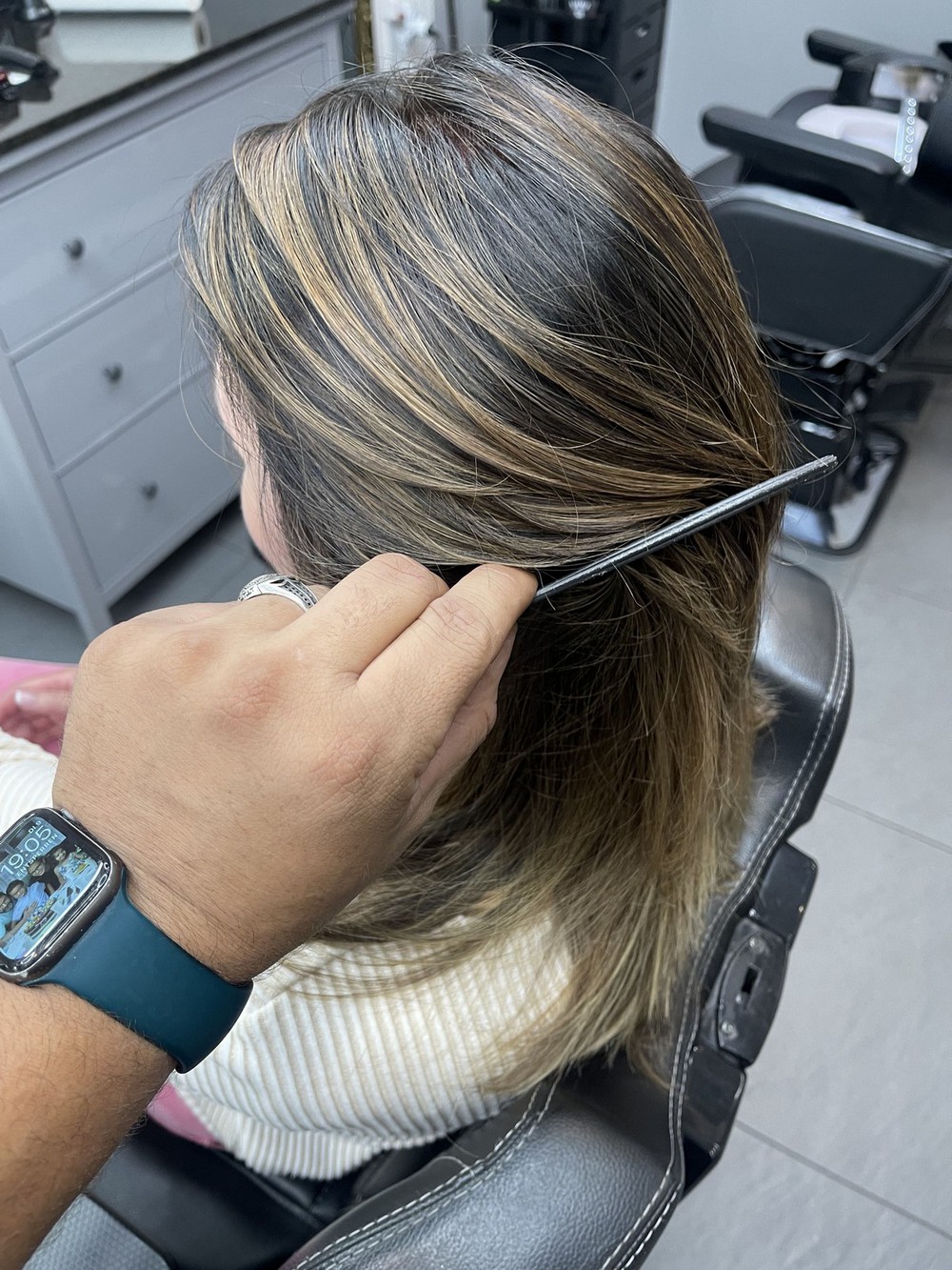 Our team blends classic technique with modern trends. From short, graphic cuts to soft long layers, from natural grey blending to luminous foil highlights, we craft hair that grows out beautifully and styles easily at home. We use professional products including Keratin, Olaplex and Steampod for strength, shine and long-lasting smoothness. Add quick finishing touches—brows, lashes, or a relaxing head massage—for a polished, ready-to-go result.